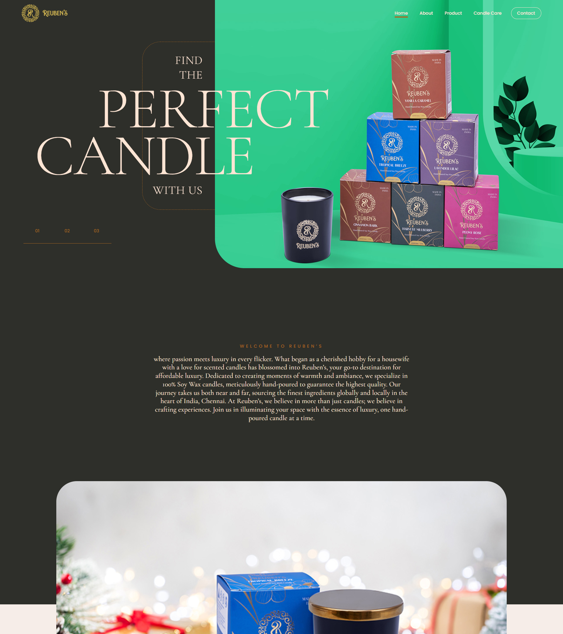 Reuben’s is more than just a candle brand, it’s a lifestyle. Rooted in passion and driven by purpose, Reuben’s offers 100% soy wax candles, hand-poured with care, love, and attention to detail. Each candle tells a story of warmth, tranquility, and elegance crafted from globally and locally sourced ingredients, with a special touch from Chennai.
